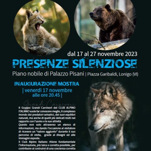 19 Ottobre 2023 “Presenze silenziose”, mostra CAI sui grandi carnivori – Lonigo, 17-27 novembre 2023 news / Senza categoria