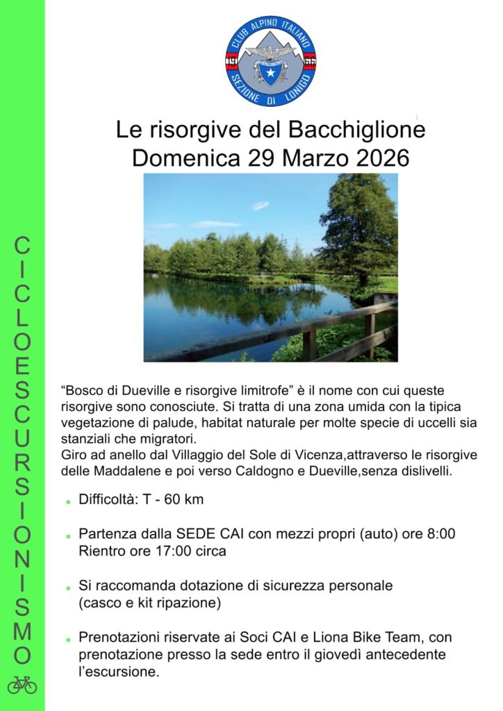 23 Mar Cicloescursione alle risorgive del Bacchiglione – domenica 29 marzo 2026
