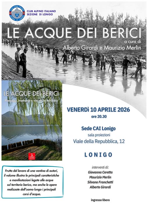 Attività culturali Venerdì 10 aprile 2026, alle 20.30 Lonigo, Sede CAI in viale della Repubblica, 12 Incontro di presentazione del libro Le acque dei Berici Il volume, a ...